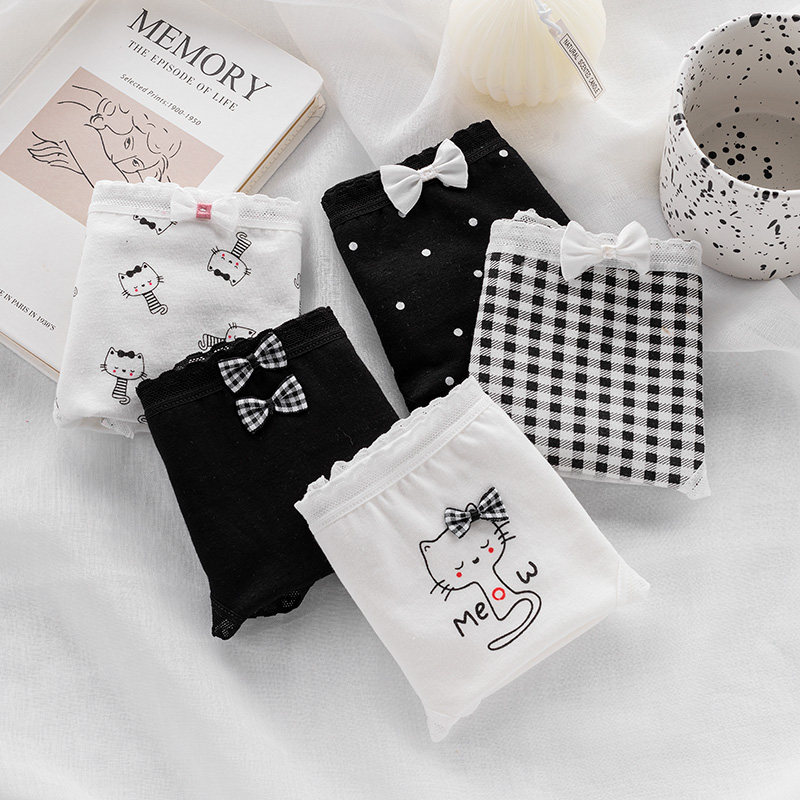 5条日系黑白猫咪内裤女纯棉中腰大码卡通少女全棉裆学生三角裤热门设计联盟服务商