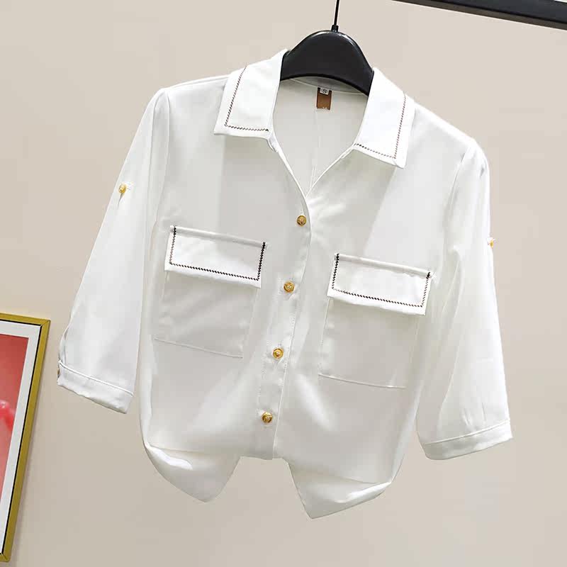 白色衬衫女中袖2021夏季新款法式轻熟风OL职业衬衣设计感雪纺上衣热门设计联盟服务商