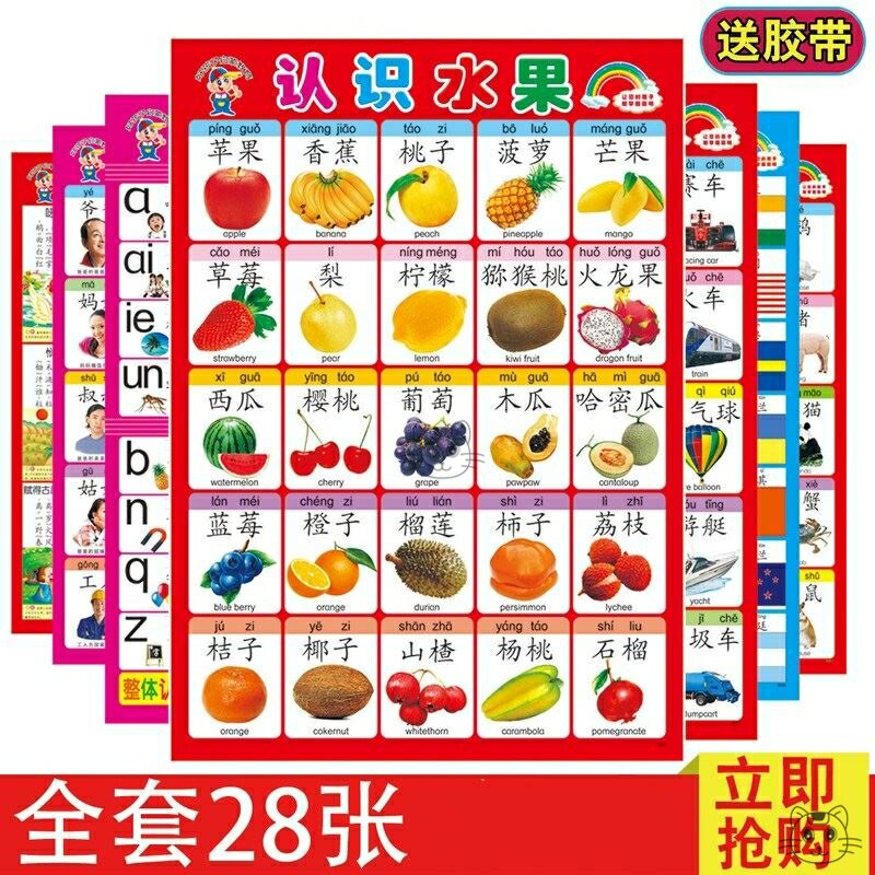 墙上贴图宝宝 婴儿墙贴挂图认知启蒙0-3岁大图片识字无声早教幼儿热门设计联盟服务商