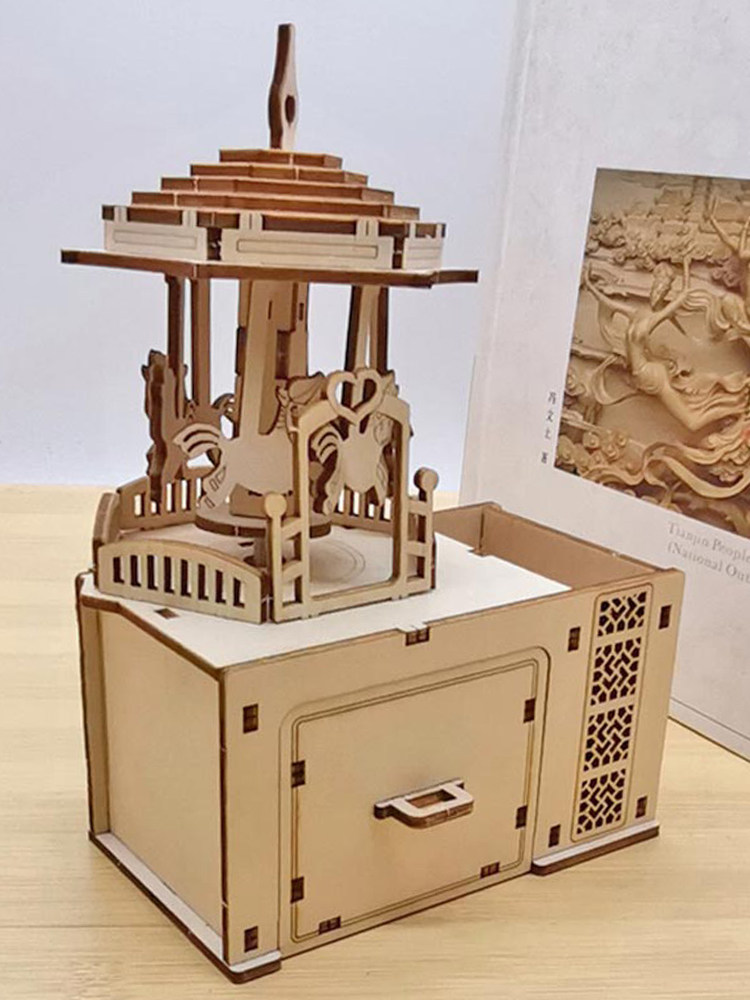 拼图立体3d模型手办音乐盒木质旋转木马拼装diy多功能玩具热门设计联盟服务商