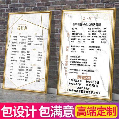 美容院价目表定h制墙贴眉眼唇美甲纹绣价格表设计制作挂墙广告海热门设计联盟服务商