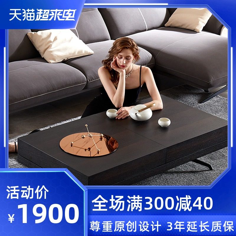 轻奢意式 网红现代 极简设计师风格橡木烟熏色样板间伸缩储物茶几热门设计联盟服务商