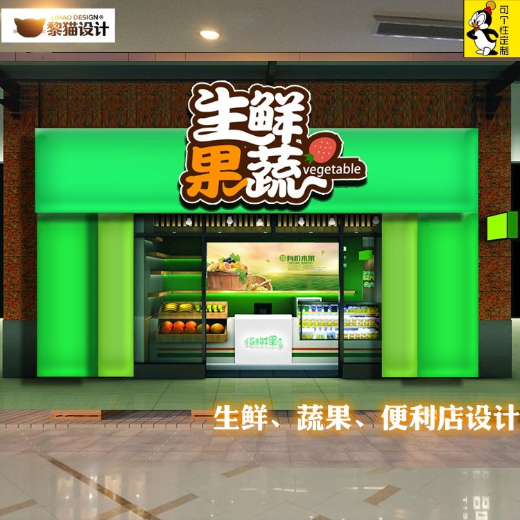 生鲜超市门头设计招牌效果图发光字牌匾平面广告蔬果店头灯箱商铺热门设计联盟服务商