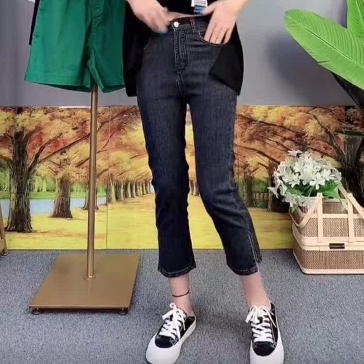 高腰显瘦紧身设计感微喇八分直筒裤新品2021不规则侧开叉牛仔裤女热门设计联盟服务商
