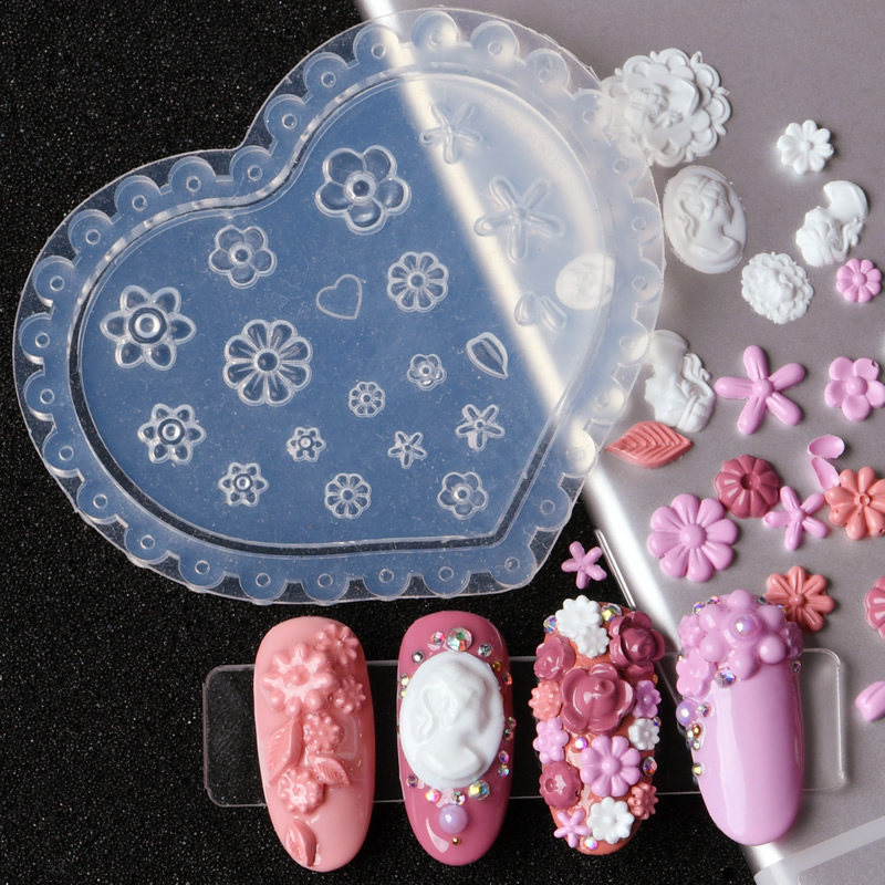 美甲硅胶模具小花光疗指甲油胶日系指甲3DIY模板浮雕雏菊玫瑰饰品热门设计联盟服务商
