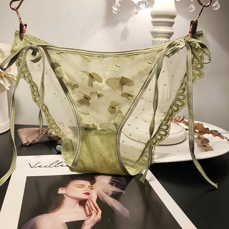 绑带性感蕾丝内裤女士网纱透视性感诱惑火辣系带三角裤蝴蝶结装饰热门设计联盟服务商
