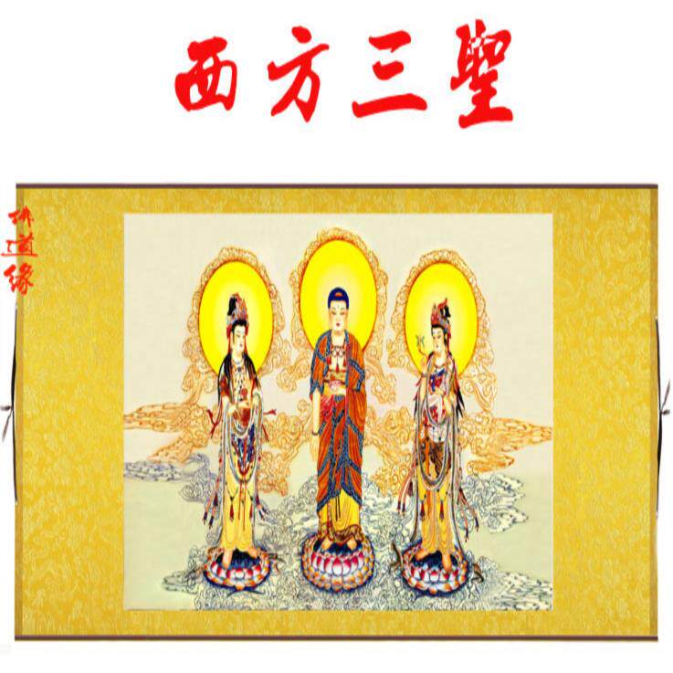 横幅西方三圣卷轴画 佛教画 西方三圣画像挂画 已装裱包邮热门设计联盟服务商