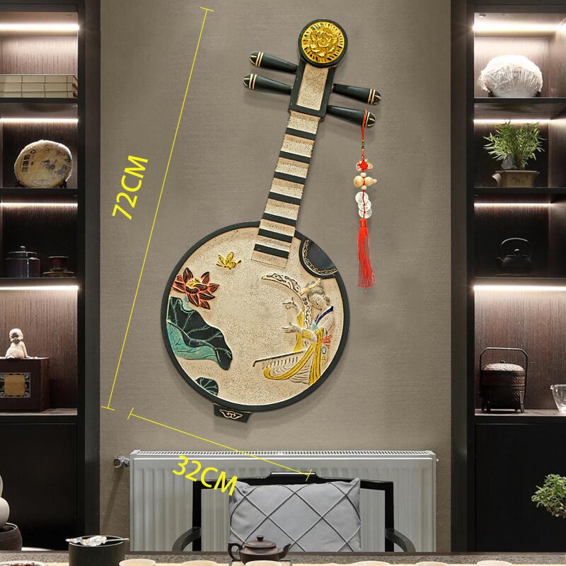 新中式装修琵琶壁饰玄关壁画书房装饰画墙面艺术浮雕画背景墙挂件热门设计联盟服务商