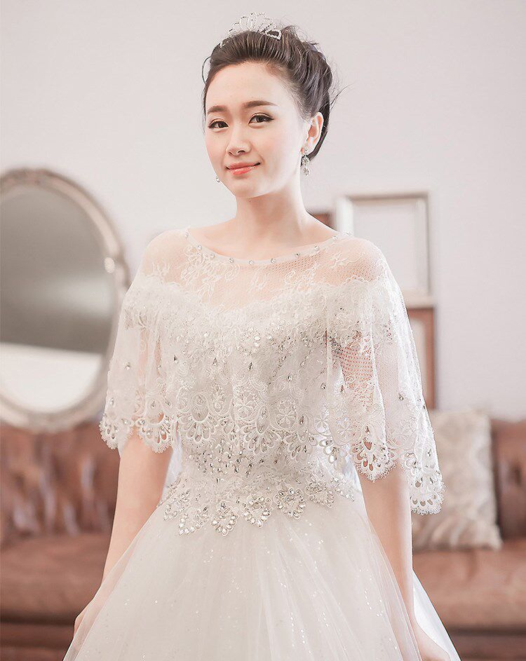 .婚纱遮粗手臂披肩新娘毛春夏秋款蕾丝结白色薄礼服钻手臂加大码热门设计联盟服务商