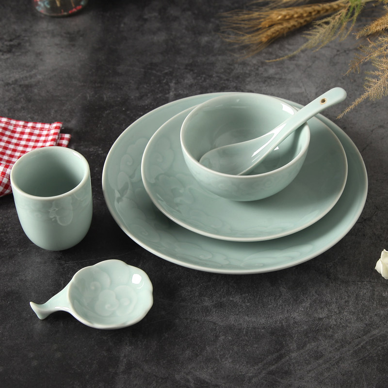 龙泉青瓷酒店摆台餐具套装会所四件套陶瓷碗碟中式餐厅定制三件套热门设计联盟服务商
